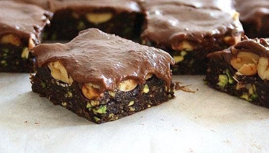Брауни с орехами и банановой глазурью