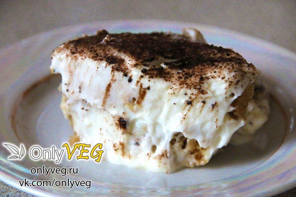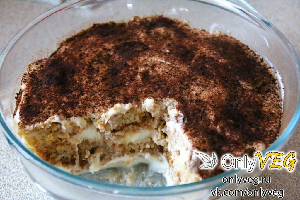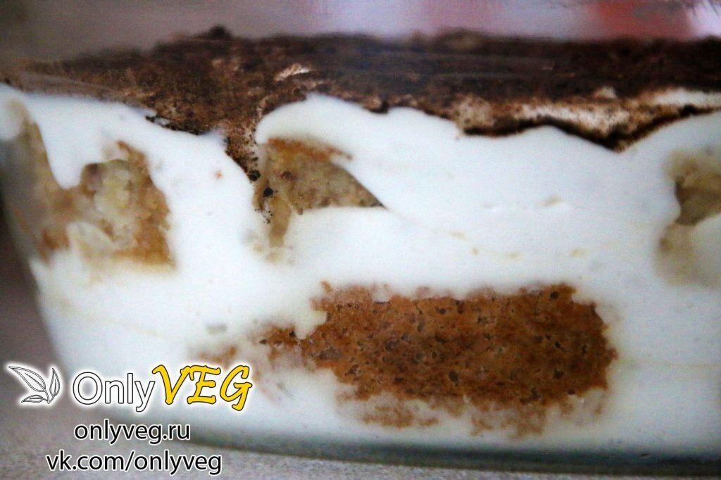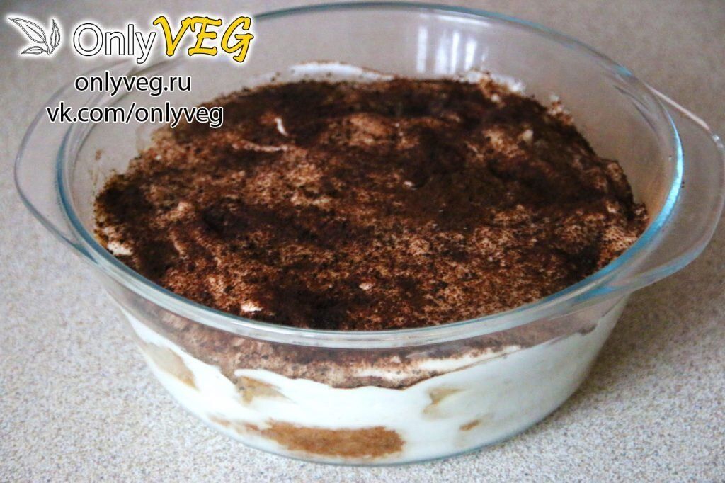 Сегодня тирамису, соответствуя динамичному и изменчивому ритму времени, принимает любые формы. Может уместиться в огромной посуде или в маленькой креманке. Способен стать тортом или мороженым. В его состав добавляют на выбор ягоды, ром, коньяк, ликер амаретто и сицилийское десертное вино марсала. Мы тоже предлагаем далеко не классический вариант тирамису-вегетарианский: без яиц, алкоголя, без крема маскарпоне.