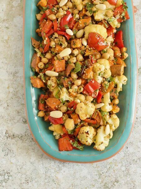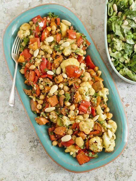 Запеченные овощи с нутом и миндалем