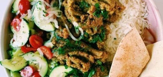 Подавать с рисом и лепешками. Украсить зеленью.