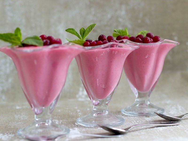 Мусс можно приготовить из любых ягод (брусники, красной смородины), особенно вкусно из черники.