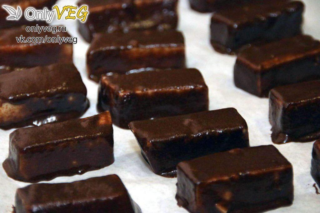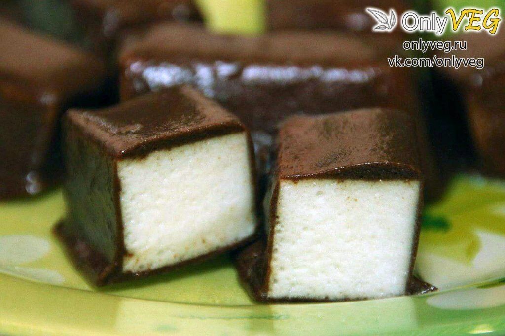 9. Далее обмакиваем брусочки суфле в глазури и выкладываем их для застывания. Если слой глазури прозрачный, то после того как один слой застынет, нужно еще раз обмакнуть в глазурь.