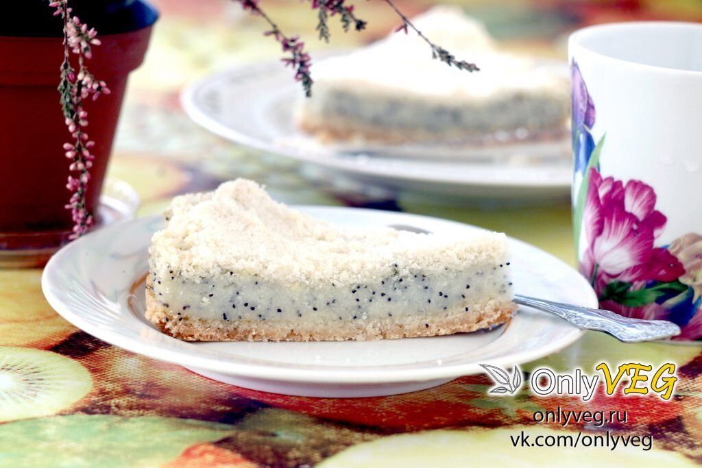 Вкуснейший пирог, в котором сочетается рассыпчатое тесто-основа и плотная творожная начинка. В интернете можно найти оригинал рецепта под названием Немецкий маковый творожник, у нас же адаптированная версия для вегетарианцев. Рецепт достаточно простой, тесто готовится быстро, немного только надо повозиться с начинкой, но она того стоит.