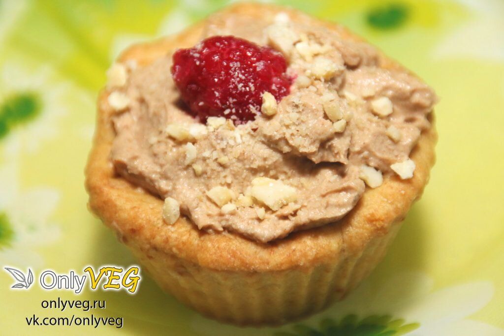 - Собираем пирожные. На дно каждой корзинки кладем чайную ложку яблочного пюре, затем делаем шапку из крема и украшаем орешками, ягодами или кусочками фруктов.