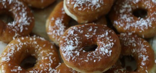 5. Когда пончики поджарятся, вынимаем их и выкладываем на бумажные полотенца. Затем кладем на блюдо и посыпаем сахарной пудрой.