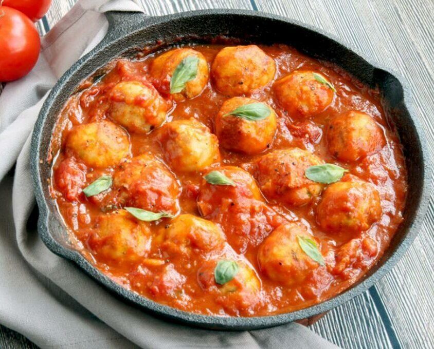 Прекрасное блюдо для сытного и полезного ужина — вегетарианские тефтели из фасоли в томатном соусе.