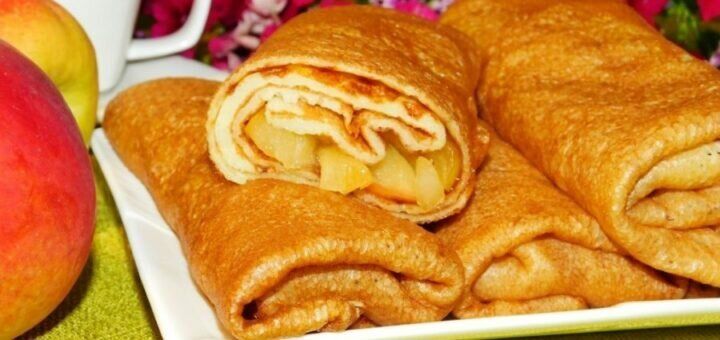 Вдохновившись очередным рецептом и испытав его на практике, делюсь с вами. Время приготовления блинов — 1 час (включая приготовление яблочной начинки), но можно жарить их на двух сковородах, тогда получится быстрее.