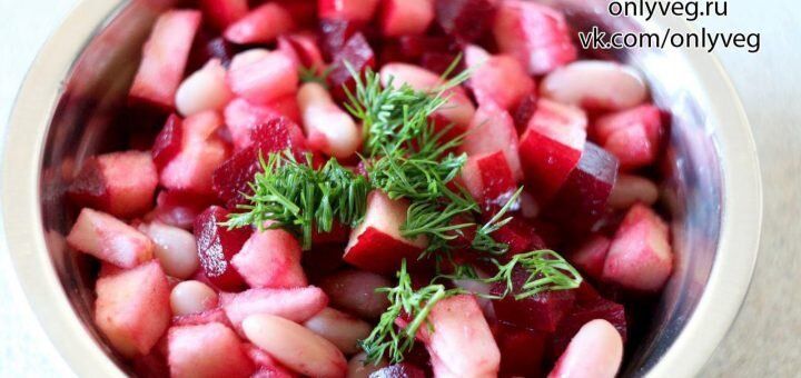 Салаты из фасоли обычно достаточно тяжелые и очень сытные. Этот салатик за счет яблока и свеклы оставляет чувство легкости и комфорта.
