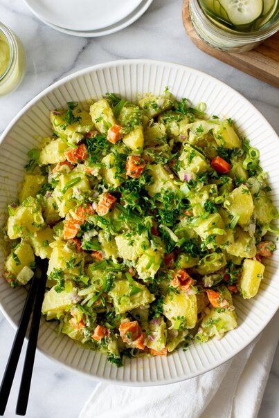 Домашний картофельный салат очень вкусный и идеально сочетается со многими блюдами.