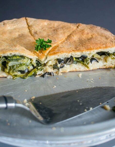 Пирог с зеленью, сыром и оливками