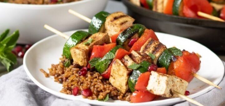 Шашлык из тофу с овощами удивит ваших гостей и украсит стол. Подойдут абсолютно любые овощи, главное — нарезать их пропорционально, чтобы время приготовления было, примерно, одинаковым.