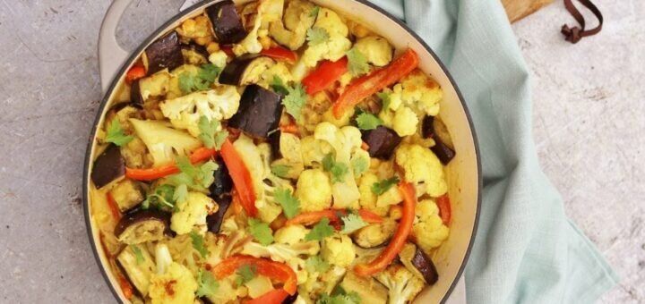 Овощное карри из запеченных овощей — индийское вегетарианское, одновременно, легкое и вкусное блюдо. Можно подавать и как основное блюдо, или как гарнир.