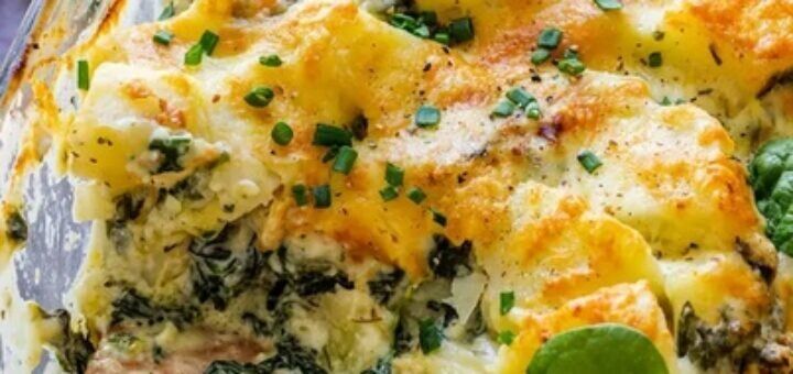 Запеченный картофель со шпинатом – это просто, вкусно и полезно. Пошаговый рецепт с фото.